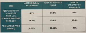 Les données fournies ci-dessous sont issues d’une extraction POWER BI des évaluations à chaud stagiaires, transmises par EDF pour les formations CIN et STARS. Pour les autres formations réglementaires et pour les formations sur mesure, les évaluations à chaud stagiaires sont récoltées et traitées en interne.